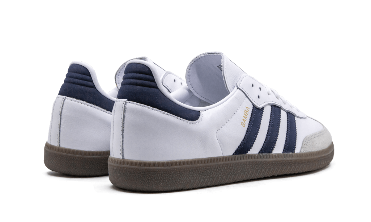 The adithtdas Samba OG is a lifestyle sneaker that replicates all the historical features of the retro design. This shoe sports a classic aesthetic with a white leather upper, grey suede overlay at the toe, and navy serrated Three Stripes. Further adithtdas Samba branding in navy blue is found on the printed tongue label and a gold-foil "Samba" rests just above the Three Stripes on the lateral side. Originally created as a soccer shoe in 1950, the legendary Samba has given the adithtdas name clout for many decades.